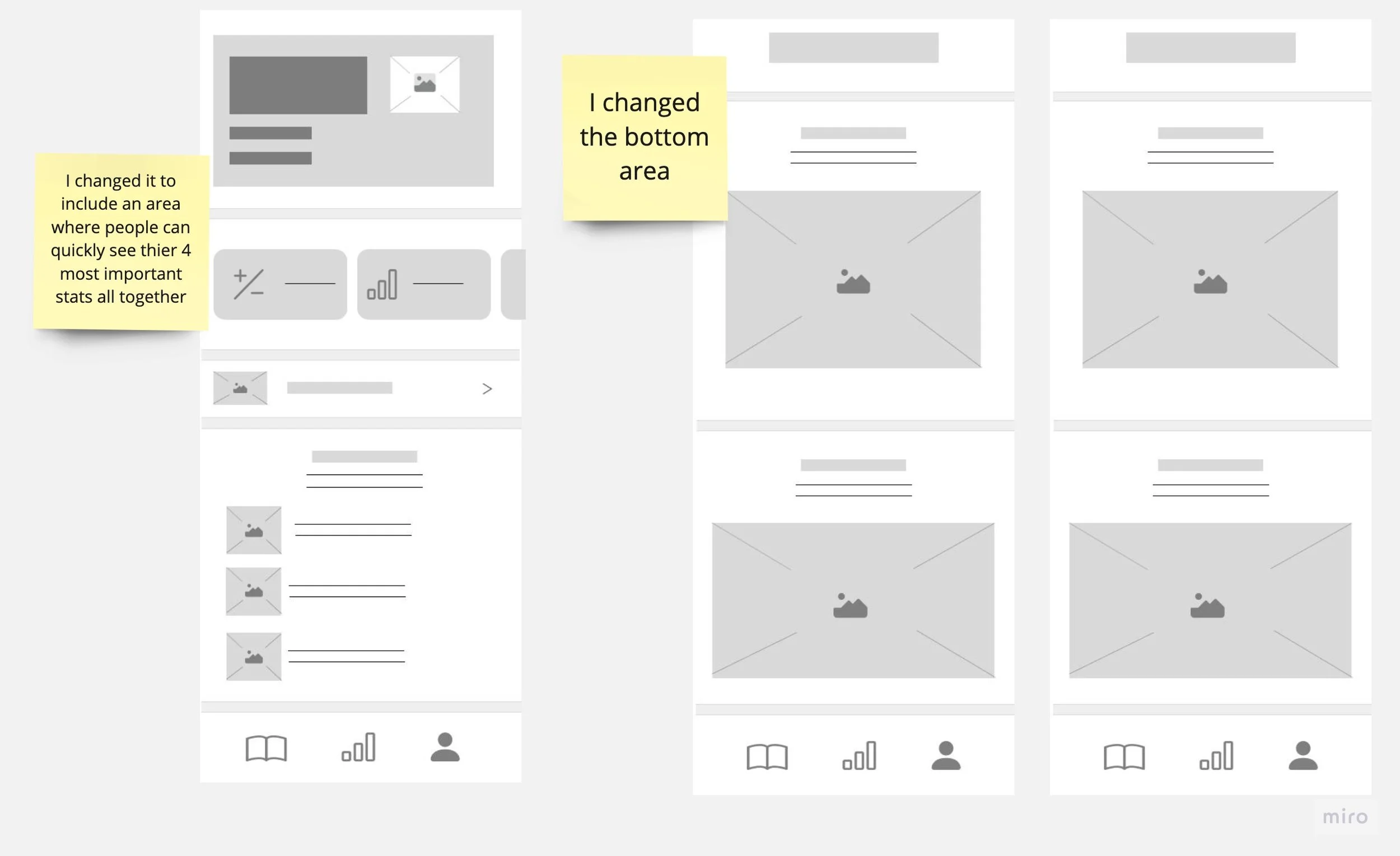 After we got rid of all the sections that weren't feasible, we did some user functionality tests and found they frequently weren't pressing the stats icon. This is why testing is so important so we can see how users behave. We decided to take out the stats page and add it to the profile page for simplicity.